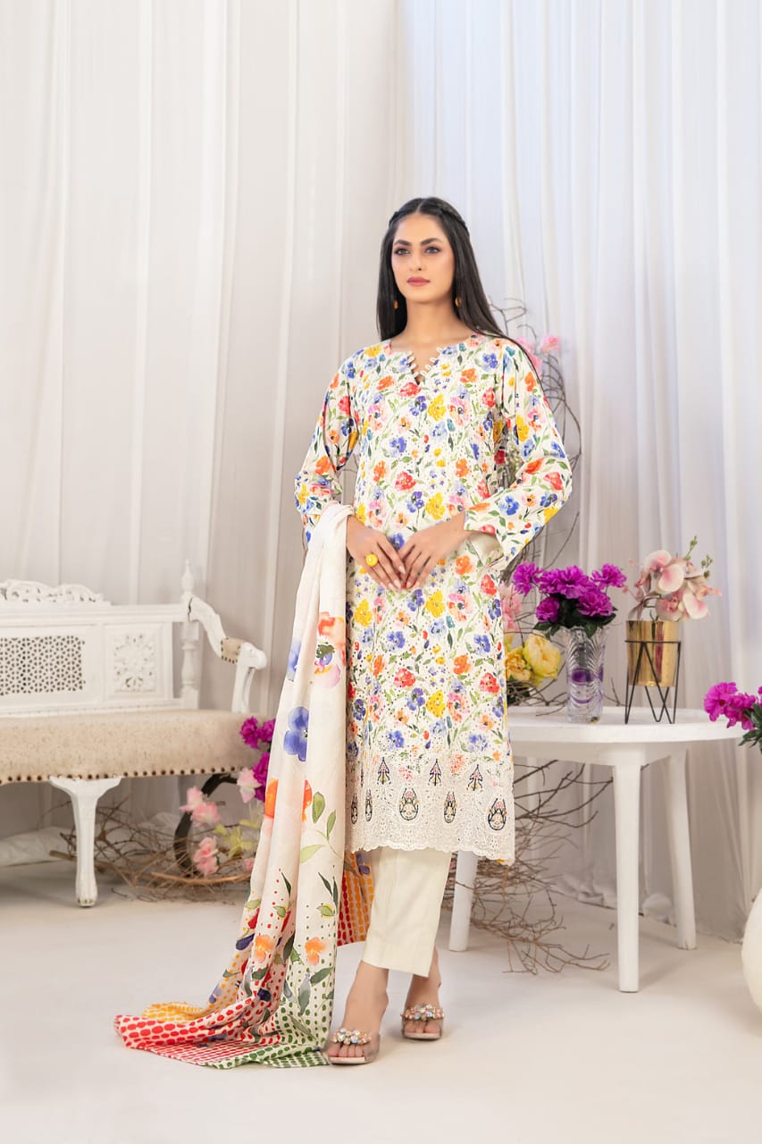 3 Piece Un-Stitched By Tawakkal Fabrics, Attractive & Elegant Digital Printed & Embroidered Viscose Collection comes with: