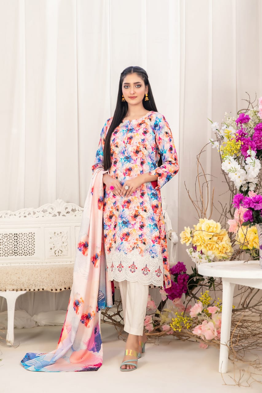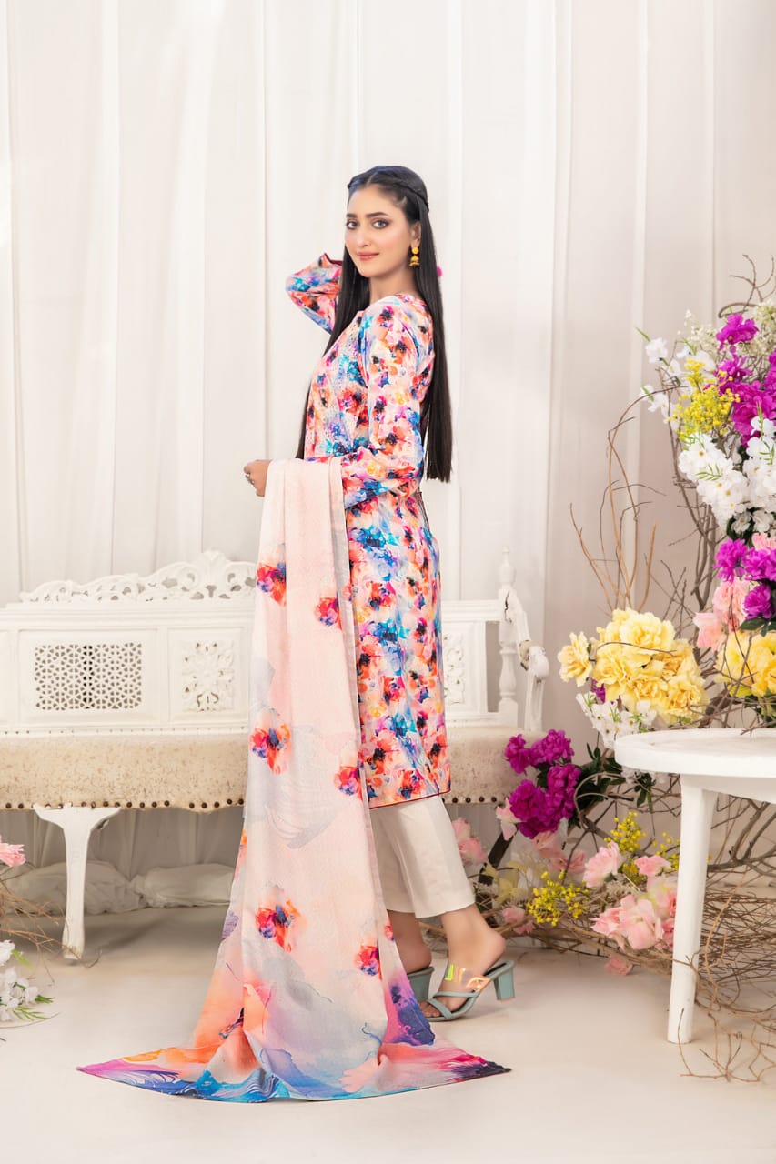 3 Piece Un-Stitched By Tawakkal Fabrics, Attractive & Elegant Digital Printed & Embroidered Viscose Collection comes with: