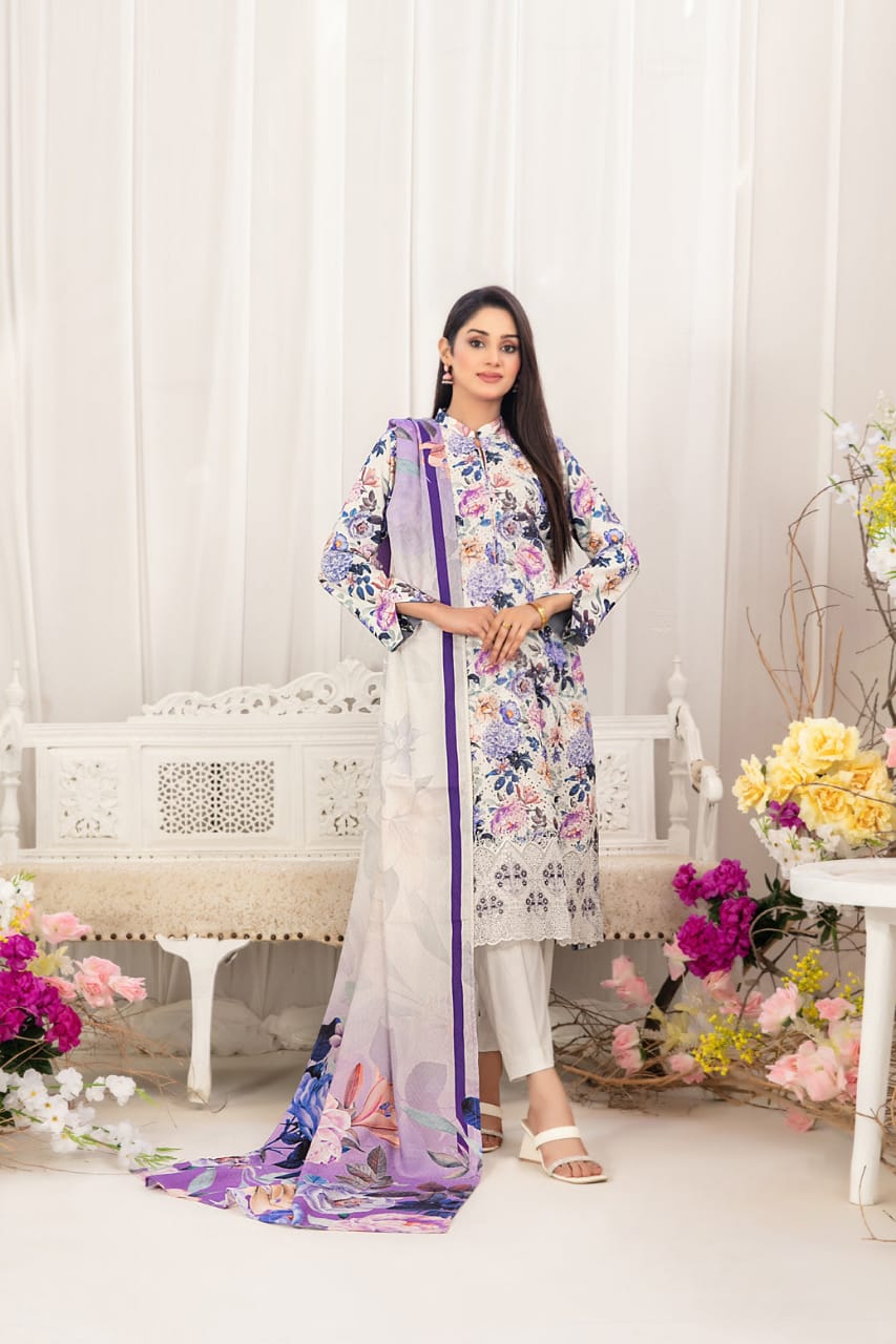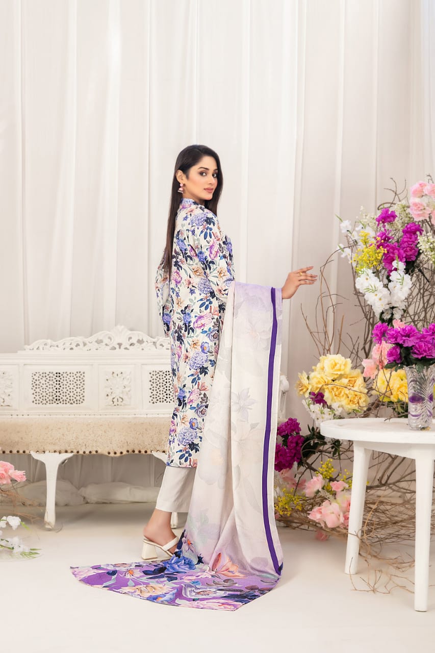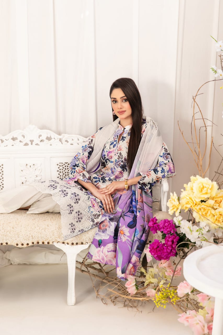 3 Piece Un-Stitched By Tawakkal Fabrics, Attractive & Elegant Digital Printed & Embroidered Viscose Collection comes with: