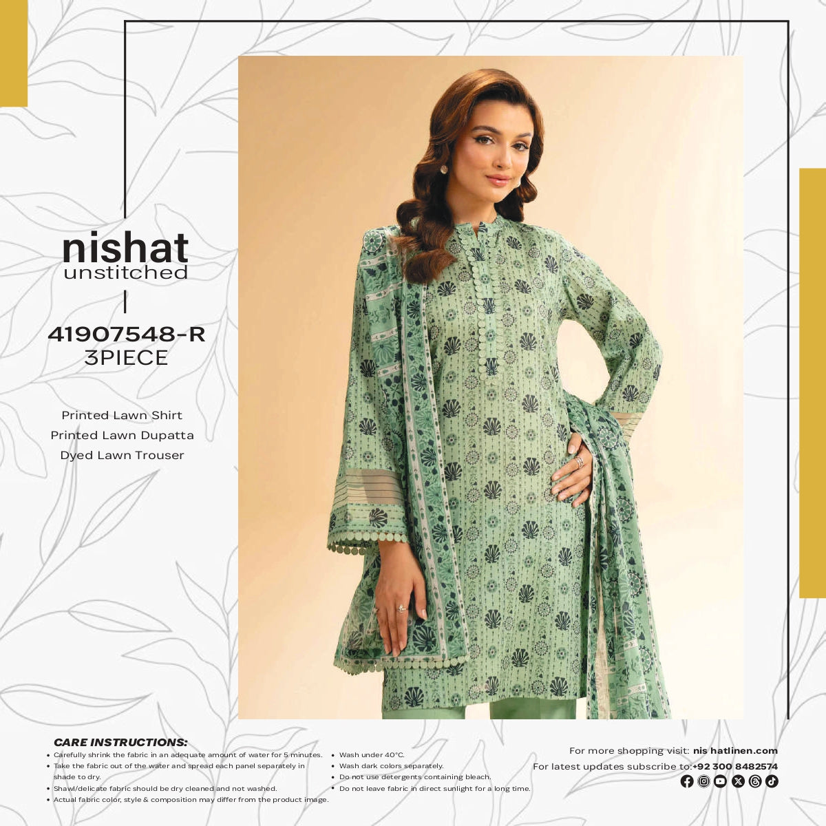 Beautiful digital printed lawn 3-piece suit featuring a soft lawn shirt, matching trouser, and printed dupatta. Lightweight, breathable fabric with fresh summer colors, perfect for daily wear and casual outing